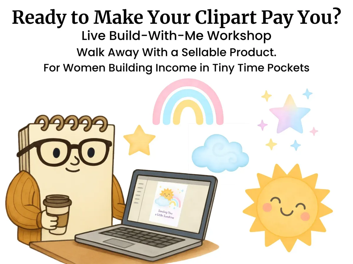 I help creative women turn clipart into finished, sellable digital products. The kind you can actually list, share, and get paid for.